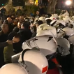 Ndërkohë policia ka ndërhyrë me gaz lotsjellës dhe autobote me ujë për të shuar flakët dhe për të shpërndarë protestuesit.