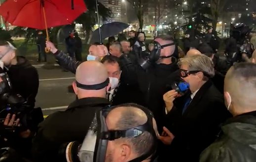 Policia është përgjigjur menjëherë duke mobilizuar topin e ujit dhe forcat e policisë që janë vendosur përreth godinës së Kryeministrisë. Po ashtu drejt protestuesve është hedhur edhe gaz lotsjellës, siç duket në pamjet.